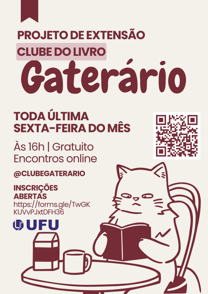 O projeto de extensão Gaterário: Clube do Livro tem como objetivo promover a leitura e a discussão de obras literárias de diferentes gêneros, compreendendo a literatura como um espaço de formação, reflexão e troca de saberes. A proposta busca aproximar a universidade da comunidade, criando um ambiente acolhedor em que os participantes possam conversar sobre livros, desenvolver o pensamento crítico e ampliar repertórios culturais.