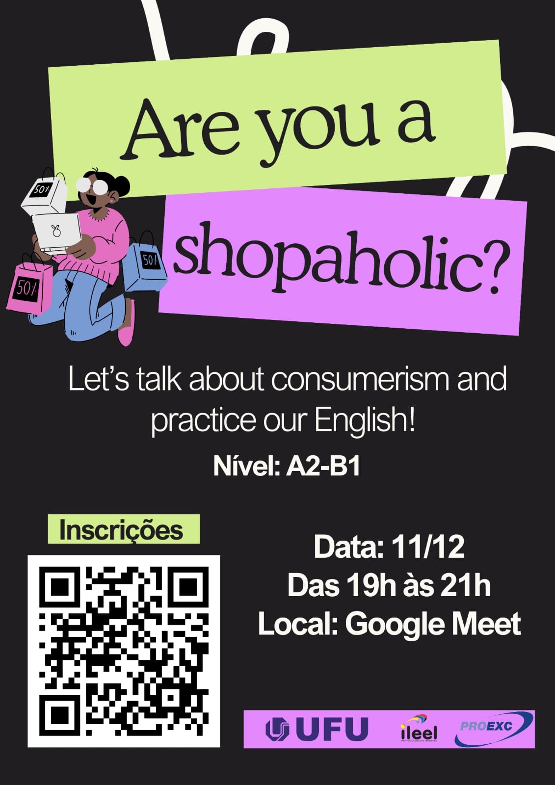 Nesta oficina vamos discutir em inglês o impacto de aplicativos de compras como Shopee, Amazon e Shein, além de refletir sobre como nossos hábitos de consumo são moldados por tendências e propagandas em redes sociais. Ao longo do encontro, aprenderemos vocabulário relacionado ao consumo em língua inglesa e participaremos de atividades que estimulam a oralidade, a compreensão e o pensamento crítico em língua inglesa.