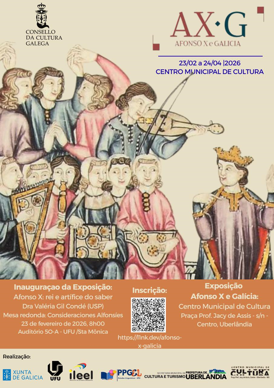 Portanto, esta ação tem como meta propor a exposição "Afonso X e Galícia", promovida pelo Conselho de Cultura Galega, com a colaboração da Junta da Galícia. A referida exposição será no Centro Municipal de Cultura, da prefeitura de Uberlândia. de 23/02/2026 a 24/04/2024. Paralelamente a exposição será proposta uma conferência e uma mesa redonda aberta a toda comunidade interna da UFU e da cidade de Uberlândia.