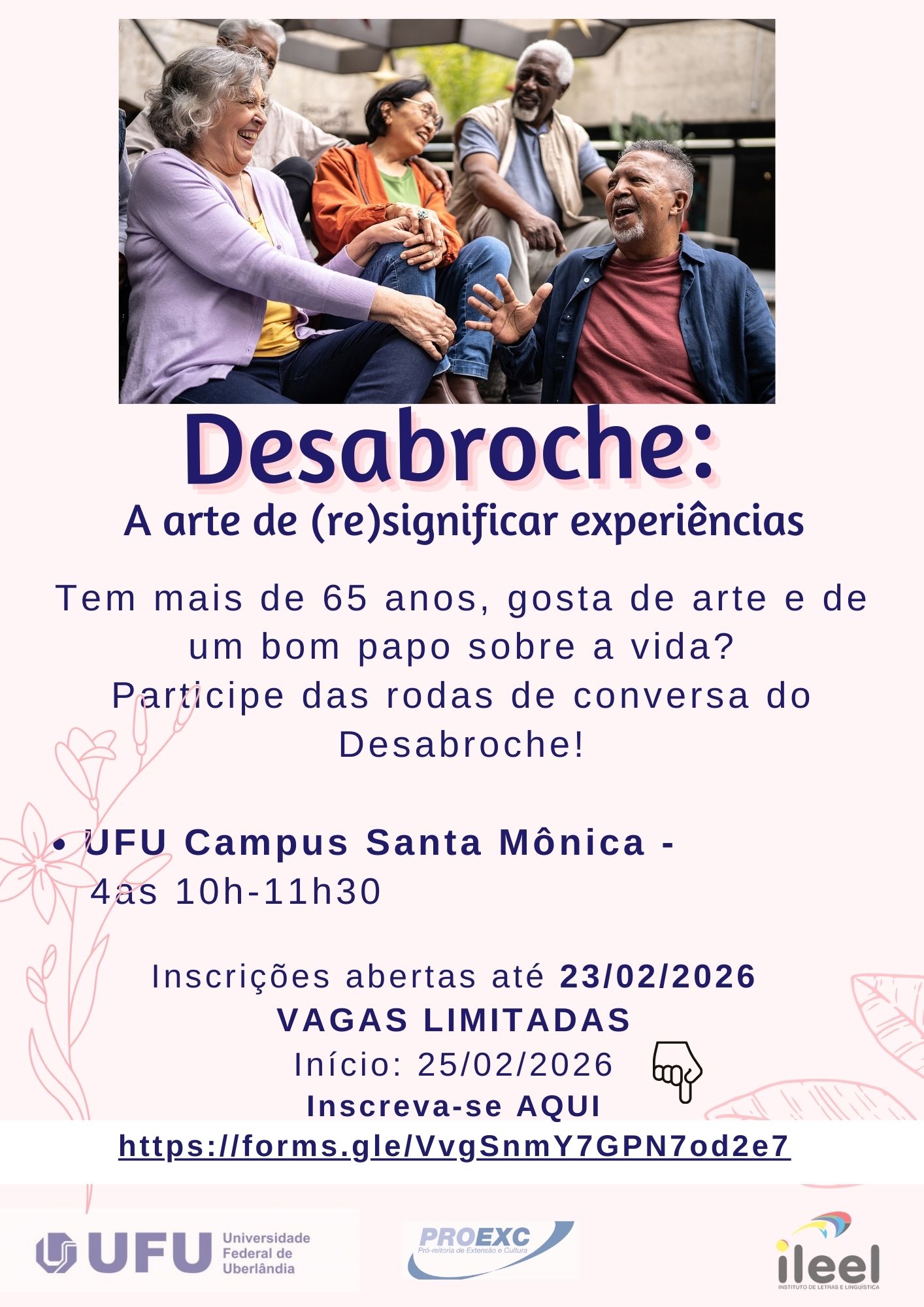 Vem desabrochar com a gente! Queremos te escutar e aprender um pouco sobre sua experiência de vida!