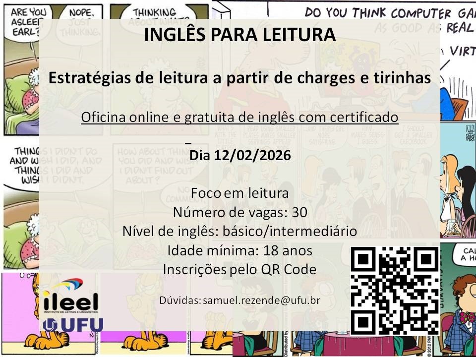 Nesta oficina, vamos aprender um pouco mais de inglês de maneira descontraída. A proposta é ampliar a habilidade interpretativa em língua inglesa por meio de charges e tirinhas. Para isso, vamos conhecer e aplicar técnicas de leitura que vão auxiliar na compreensão de aspectos verbais e não verbais. O objetivo é estimular a leitura e o pensamento críticos em inglês.